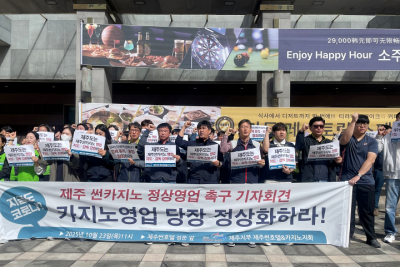[ÇѶóÀϺ¸] Á¦ÁÖÀÇ È£ÅÚ ³ëµ¿ÀÚµéÀÌ Ä«Áö³ë ¿µ¾÷ Á¤»óȸ¦ Ã˱¸ÇÏ°í ³ª¼¹´Ù.