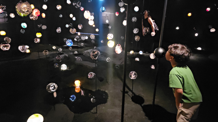 ¾îµÒ ¼Ó¿¡¼´Â À¯¸® Àü±¸µéÀÌ ÀºÇÏó·³ ÄÑÁö´Â 'À¯¸® ÄÚ½º¸ð½º'°¡ ÆîÃÄÁ³´Ù. °ü¶÷°´ÀÇ ¼û°á¿¡ µû¶ó ºûÀÌ ¹øÁ® ³ª°¡¸ç ¼·Î ´Ù¸¥ À¯¸®°¡ ÇϳªÀÇ ÀºÇϸ¦ ¸¸µé¾ú´Ù. »óó¹ÞÀº »ç¶÷µéÀÇ È£ÈíÀÌ ¸ð¿© Ä¡À¯ÀÇ ºûÀ¸·Î º¯ÇÏ´Â µíÇß´Ù. À̾îÁö´Â '¿ì¸®´Â º°ÀÇ ¸ÕÁö´Ù'¿¡¼´Â °Å¿ï°ú ¿µ»ó ¼Ó ÀÚ½ÅÀÌ ¼ö¸¹Àº º° »çÀÌÀÇ ÇÑ Á¡À¸·Î º¸¿´´Ù. '³ª´Â ÀÛÁö¸¸ ¼ÒÁßÇÑ Á¸Àç'ÀÓÀ» ´À³¥ ¼ö ÀÖ¾ú´Ù.