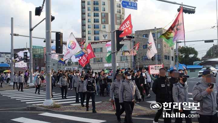 ÇÑÆí Çà»çÀå Àαٿ¡¼´Â Á¦ÁÖÆ¯º°ÀÚÄ¡µµ ±âµ¶±³±³´ÜÇùÀÇȸ°¡ ÁÖÃÖÇÑ ¡®Äû¾îÇà»ç¹Ý´ë Á¦ÁÖµµ¹Î´ëȸ¡¯°¡ ¿·È´Ù. ´ëȸ´Â ½Ã¹Î 100¿© ¸íÀÌ Âü¼®ÇßÀ¸¸ç ¡°Æ÷°ýÀû Â÷º°±ÝÁö¹ý Á¦Á¤ ¹Ý´ë¡±, ¡°Çб³ µ¿¼º¾Ö ÀαDZ³À° ¹Ý´ë¡± µîÀÇ ±¸È£¸¦ ¿ÜÃÆ´Ù. ¹°¸®Àû Ãæµ¹¿¡ ´ëºñÇØ °æÂû º´·ÂÀÌ ÅõÀԵŠÁú¼ À¯Áö¿¡ ³ª¼¹À¸³ª ´ÙÇàÈ÷ Å« ¸¶ÂûÀº ¹ß»ýÇÏÁö ¾Ê¾Ò´Ù.