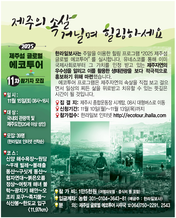 [¾Ë¸²] '2025 Á¦ÁÖ¼¶ ±Û·Î¹ú ¿¡ÄÚÅõ¾î' 11Â÷ Âü°¡ÀÚ ¸ðÁý