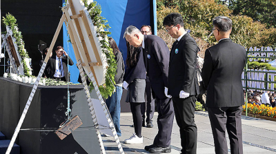 [ÇѶóÀϺ¸] ÀÌÁß±Ù ´ëÇѳëÀÎȸÀå(ºÎ¿µ±×·ì ȸÀå)À» ºñ·ÔÇÑ ±¹¹Î´ëÇ¥ 4ÀÎÀÌ À¯¿£ ÂüÀü¿ë»çµéÀÇ ¼þ°íÇÑ Çå½Å°ú Èñ»ýÀ» Ã߸ðÇß´Ù.