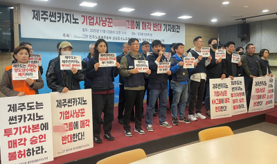 [ÇѶóÀϺ¸] ¹ÎÁÖ³ëÃÑ Á¦ÁÖº»ºÎ´Â 12ÀÏ ¿ÀÀü Á¦ÁÖµµÀÇȸ µµ¹ÎÄ«Æä¿¡¼ ±âÀÚȸ°ßÀ» ¿°í ¡°Á¦ÁÖ½ãÄ«Áö³ë ±â¾÷»ç³É²Û A±×·ì ¸Å°¢À» ¹Ý´ëÇÑ´Ù¡±¸ç Á¦ÁÖµµ¿¡ ¸Å°¢ ½ÂÀÎ ºÒÇ㸦 ¿äûÇß´Ù.