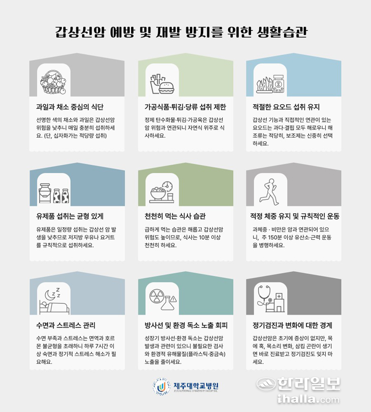°©»ó¼±¾ÏÀº ´ëºÎºÐ Áõ»óÀÌ ¾ø¾î Á¶±â¿¡ ¹ß°ßÇÏ±â ¾î·ÆÁö¸¸, Áø´ÜÀÌ ´Ê¾îÁú °æ¿ì ½É°¢ÇÑ ¹®Á¦°¡ »ý±æ ¼ö ÀÖ´Ù. ¾ÏÀÌ Ä¿Áö¸é ÁÖº¯ Á¶Á÷À» ħ¹üÇØ ¼º´ë¸¶ºñ¸¦ À¯¹ßÇÏ´Â ÈĵνŰæ, ±âµµ, ½Äµµ µîÀ¸·Î ÆÛÁú ¼ö ÀÖ´Ù. ÀÌ °æ¿ì ¸ñ¼Ò¸®°¡ ¿µ±¸ÀûÀ¸·Î º¯Çϰųª È£Èí, ½Ä»ç°¡ ¾î·Á¿öÁö´Â ÇÕº´ÁõÀÌ ¹ß»ýÇÒ ¼ö ÀÖÀ¸¸ç, ¼ö¼ú ¹üÀ§µµ ³Ð¾îÁö°í ¼ö¼ú ÈÄ »îÀÇ Áú¿¡µµ ¿µÇâÀ» ¹ÌÄ£´Ù. ÀÌ·¯ÇÑ ÀÌÀ¯·Î °©»ó¼±¾ÏÀº Á¶±â Áø´Ü°ú Ä¡·á°¡ ¸Å¿ì Áß¿äÇÏ´Ù.