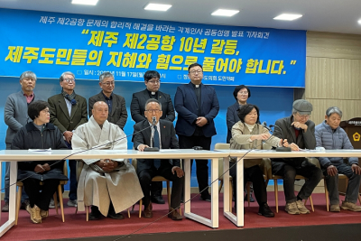 [ÇѶóÀϺ¸] Á¦ÁÖÁö¿ª Á¾±³°è¿Í ½Ã¹Î»çȸ´Üü µî °¢°è ÀλçµéÀÌ Á¦ÁÖÁ¦2°øÇ× °¥µîÀÇ ÇØ°áÃ¥À¸·Î ¡®µµ¹ÎÀÇ ÀÚ±â°áÁ¤±Ç¡¯À» Ã˱¸ÇÏ°í ³ª¼¹´Ù.