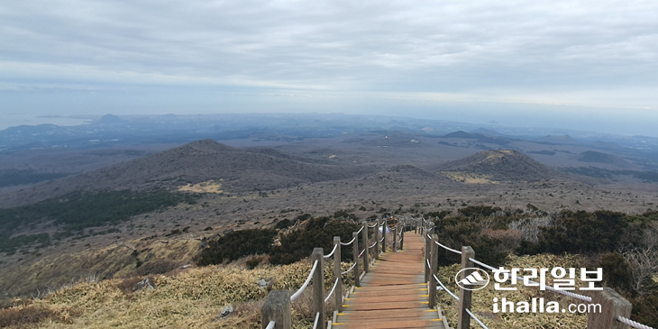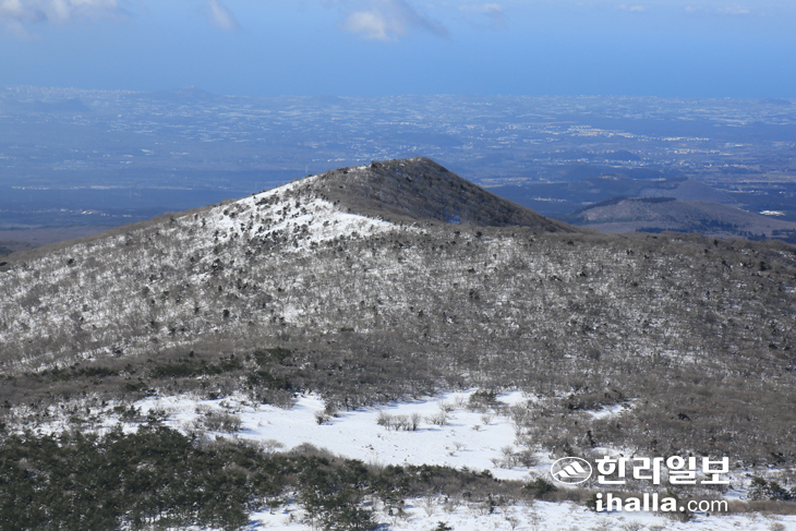 [ÇѶóÀϺ¸] ÇѶó»ê ¿µ½Ç޹æ·ÎÀÇ ½£±æÀ» Áö³ª¸é ÇÏ´ÃÀÌ ¿¸®¸é¼ ½Ã¾ß°¡ Æ®ÀδÙ. ¼ûÀÌ °¡»Ú´Ù. µÚ¸¦ µ¹¾Æº¸¸é µå³ÐÀº ½£°ú ¿À¸§°ú ÇØ¾È°ú ¹Ù´Ù°¡ µé¾î¿Â´Ù. °¡Àå °¡±îÀÌ º¸ÀÌ´Â ¿À¸§ÀÌ º¼·¹¿À¸§ÀÌ´Ù. ¼±ÍÆ÷½Ã ÇÏ¿øµ¿ »ê1-1´Ù. Ç¥°í 1374.2m, ÀÚü ³ôÀÌ 104m´Ù. ÀÌ ¿À¸§¿£ ºÏ¼ÂÊÀ¸·Î Å©°Ô ¹ú¾îÁø ºÐȱ¸°¡ ÀÖ´Ù. ¿À¸§ Á¤»ó¿¡¼ ȱ¸¹Ù´Ú¿¡ À̸£´Â »ç¸éÀÌ ±Þ°æ»ç¸¦ ÀÌ·ç°í ÀÖ´Ù. ³²¼ÂÊÀ¸·Î´Â Ä¿´Ù¶õ °è°îÀÌ ¸¸µé¾îÁ® Àִµ¥, ƯÈ÷ Á¤»ó ºÎºÐÀº ±ð¾ÆÁö¸¥ ±Þ°æ»ç¸¦ ÀÌ·ç°í ÀÖ´Ù. µ¿ÂÊ ±â½¾¿¡´Â »ùÀÌ ¼Ú´Â´Ù.