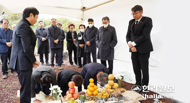 Á¦ÁÖ4¡¤3Èñ»ýÀÚÀ¯Á·È¸(ȸÀå ±èâ¹ü)´Â Áö³ 18ÀÏ ´Ù¶û½¬±¼ À§·ÉÁ¦´Ü¿¡¼ ±èÀοµ Á¦ÁÖµµ Ưº°ÀÚÄ¡ÇàÁ¤±¹Àå, °Èñ°æ 4¡¤3Áö¿ø°úÀå, °í¿µÇ¥ 4¡¤3ÆòÈÀç´Ü »ç¹«Ã³ÀåÀ» ºñ·ÔÇØ À¯Á·È¸ ÀÓ¿øÁø À¯Á· 50¿© ¸íÀÌ Âü¼®ÇÑ °¡¿îµ¥ Èñ»ýÀÚ 11ÀÎÀ» ±â¸®´Â À§·ÉÁ¦¸¦ ºÀÇàÇß´Ù.