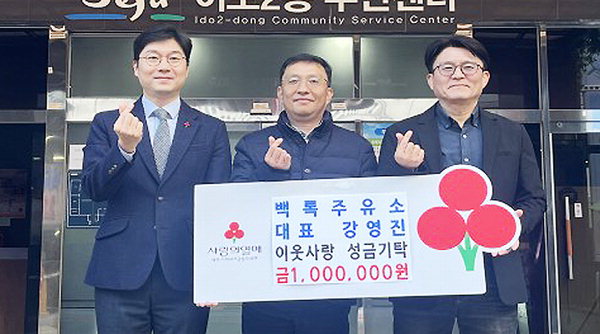 [ÇѶóÀϺ¸] ¹é·ÏÁÖÀ¯¼Ò(´ëÇ¥ °¿µÁø)´Â Áö³ 19ÀÏ Á¦Áֽà À̵µ2µ¿ Áö¿ª ³» Ãë¾à°¡±¸¸¦ À§ÇØ ÀÌ¿ô»ç¶û ¼º±Ý 100¸¸¿øÀ» Á¦ÁÖ»çȸº¹Áö°øµ¿¸ð±Ýȸ¸¦ ÅëÇØ ±âŹÇß´Ù. ¹é·ÏÁÖÀ¯¼Ò´Â ¸Å³â ÀÏÁ¤ Çö±ÝÀ» ±âŹÇϰí ÀÖ´Ù.