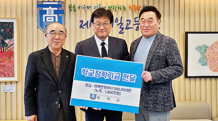 Á¦ÁÖÁ¦ÀϰíµîÇб³ 20ȸ ȸÀå´Ü ¸ðÀÓ ¿ë¸ÆÈ¸(ȸÀå ¹ÚÁ¾±æ)´Â Áö³ 18ÀÏ Á¦ÁÖÁ¦ÀÏ°í¿¡ Çб³¹ßÀü±â±Ý 200¸¸¿øÀ» ±âŹÇß´Ù. ¿ë¸ÆÈ¸´Â ¸Å³â ¹ßÀü±â±ÝÀ» ±âÅ¹ÇØ ¿À°í ÀÖÀ¸¸ç ÇöÀç ´©Àû ±Ý¾×Àº 1800¸¸¿ø¿¡ À̸¥´Ù.
