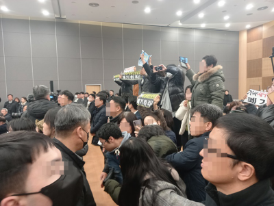 ÇåÀå Á¦Á¤ ¹Ý´ë ÃøÀº Çà»ç ½ÃÀÛ 1½Ã°£ ÀüºÎÅÍ Çà»çÀå ÀÔ±¸¿¡ ¸ð¿© ÀαÇÇåÀå öÆó¡¤¹«È¿È¸¦ ¿ä±¸Çϸç Çà»çÀå ÀÔÀåÀ» ½ÃµµÇß´Ù. À̸¦ µµÃ» °ø¹«¿ø¡¤°æÂû µîÀÌ ¸·¾Æ¼¸ç ´ëÄ¡°¡ À̾îÁø °¡¿îµ¥ ´çÃÊ Á¦ÁÖµµ Á¦½ÃÇÑ ½Ã°£ÀÌ Áö³ªÀÚ À̸¦ °ÅÄ¥°Ô Ç×ÀÇÇÏ¸ç ¼Ò¶õÀÌ ÀϾú´Ù. ¶ÇÇÑ ÀÔÀåÀ» ½ÃµµÇÏ´Â ±âÀÚµéÀ» ºÙÀâ°í "³Ê´Â ¹ºµ¥ ÀÔÀåÇϳÄ", "±â»ç ¶È¹Ù·Î ½á¶ó" µî °ÅÄ£ ¾ðÇàÀ» º¸¿´´Ù