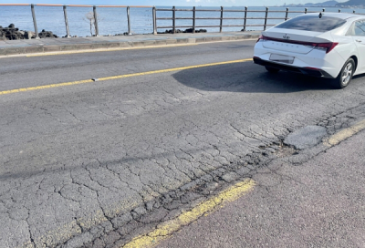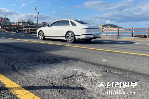 [ÇѶóÀϺ¸] »ç½Ã»çö °ü±¤°´µéÀÌ Ã£´Â Á¦ÁÖÀÇ ¿ë´ã ÇØ¾Èµµ·Î. ÇÏÁö¸¸ µµ·Î °÷°÷¿¡ ¹ß»ýÇÑ Æ÷ƮȦ°ú ±Õ¿ µîÀ¸·Î ¿îÀüÀÚµéÀÇ ºÒÆíÀÌ À̾îÁö°í ÀÖ´Ù.