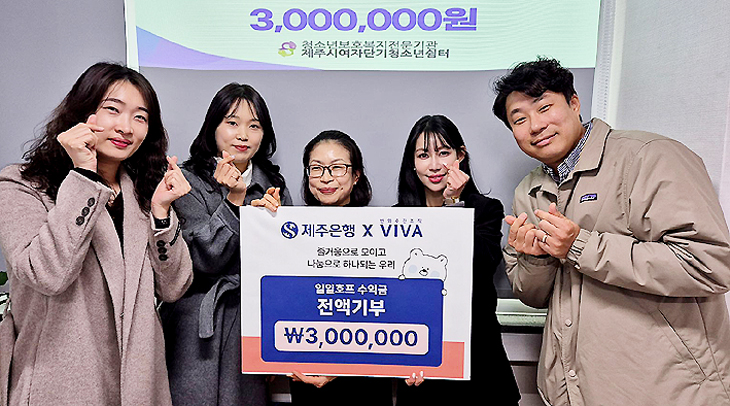 Á¦ÁÖÀºÇà(ÀºÇàÀå ÀÌÈñ¼ö)Àº ³»ºÎ º¯ÈÃßÁøÁ¶Á÷ 'V.I.V.A'°¡ ÃÖ±Ù ÁÖÃÖÇÑ ÀÏÀÏÈ£ÇÁ Çà»ç¸¦ ÅëÇØ ¸¶·ÃÇÑ ¼öÀÍ±Ý ÃÑ 1000¸¸¿øÀ» µµ³» »çȸº¹Áö±â°ü 4°÷¿¡ Àü´ÞÇß´Ù.