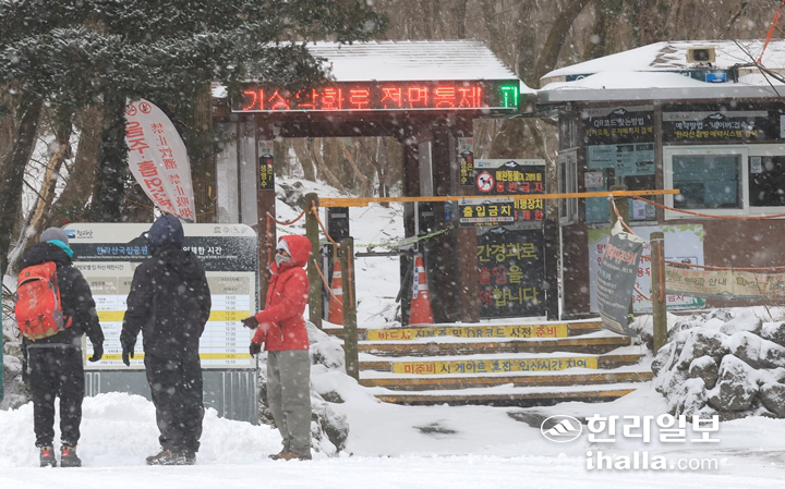 ÇÑÆí ÇѶó»ê¿¡ ¸¹Àº ´«ÀÌ ³»¸®¸é¼ 26ÀÏ ¿ÀÀü 8½Ã30ºÐ ±âÁØ ÇѶó»êÀ» Ⱦ´ÜÇÏ´Â 1100µµ·Î¿Í 516µµ·Î°¡ Àü¸é ÅëÁ¦µÇ°í ÀÖ´Ù.