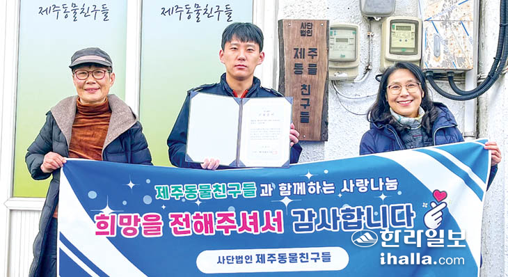 Á¦ÁÖ¼Ò¹æ¼ ¼Ò¼Ó °¼öÁ¾ ¼Ò¹æ»ç´Â 5ÀÏ 100¸¸¿øÀ» µµ³» µ¿¹°º¸È£´ÜüÀÎ 'Á¦ÁÖµ¿¹°Ä£±¸µé'¿¡ ±âºÎÇß´Ù.