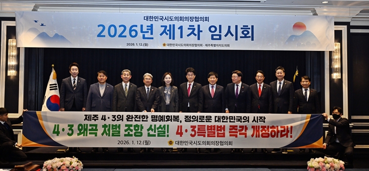 ´ëÇѹα¹½ÃµµÀÇȸÀÇÀåÇùÀÇȸ´Â À̳¯ ±×·£µåÁ¶¼± Á¦ÁÖÈ£ÅÚ¿¡¼ '2026³â Á¦1Â÷ ÀÓ½Ãȸ'¸¦ ¿¾î ÀÌ·± ³»¿ëÀÇ 'Á¦ÁÖ 4¡¤3ÀÇ ¿ÏÀüÇÑ ¸í¿¹È¸º¹°ú ±¹¹Î ÅëÇÕÀ» À§ÇÑ 4¡¤3Ưº°¹ý °³Á¤ Ã˱¸ °ÇÀǾÈ'À» äÅÃÇß´Ù. °ÇÀǾÈÀº À̹ø ÀÓ½Ãȸ¸¦ ÁÖ°üÇÑ ÀÌ»óºÀ ÀÇÀåÀÌ Á¦ÃâÇÑ °ÍÀÌ´Ù.