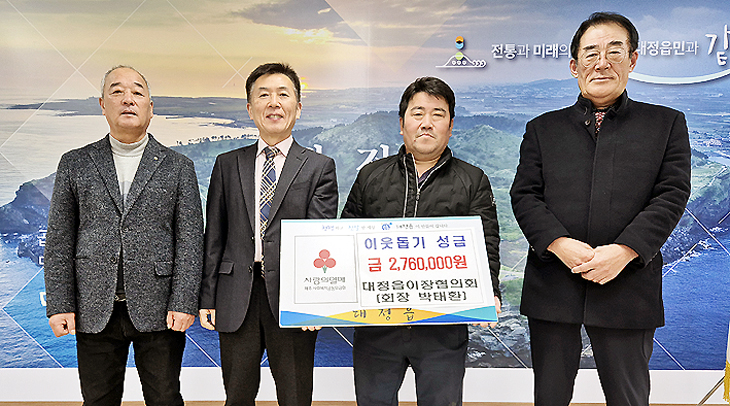´ëÁ¤À¾ÀÌÀåÇùÀÇȸ(ȸÀå ¹ÚÅÂȯ)´Â Áö³ 8ÀÏ ´ëÁ¤À¾»ç¹«¼Ò(À¾Àå ÇѺеµ)¸¦ ¹æ¹®ÇÏ¿© ´ëÁ¤À¾ Áö¿ª ³» ¾î·Á¿î ÀÌ¿ôµéÀ» À§ÇØ »ç¿ëÇØ ´Þ¶ó¸ç ÀÌ¿ôµ½±â ¼º±ÝÀ» Àü´ÞÇß´Ù.
