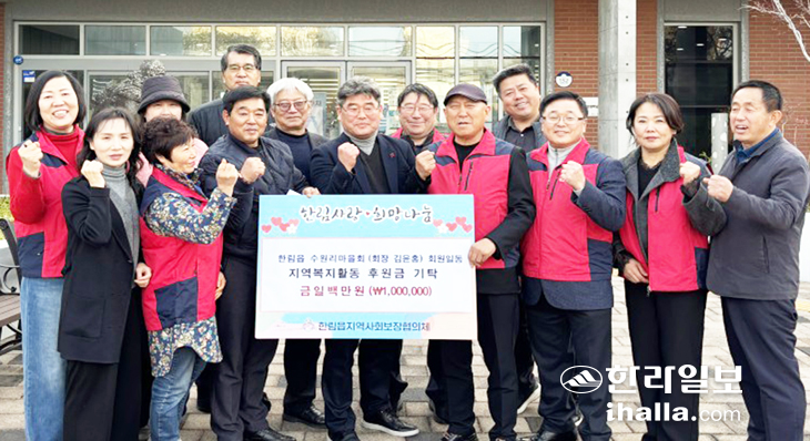 Á¦Áֽà ÇѸ²À¾ ¼ö¿ø¸®¸¶À»È¸(ȸÀå ±èÀ±È«) ȸ¿ø Àϵ¿Àº Áö³ 12ÀÏ Áö¿ª ³» º¹Áö»ç°¢Áö´ë ÀÌ¿ôµé¿¡°Ô »ç¿ëÇØ ´Þ¶ó¸ç ÈÄ¿ø±Ý 100¸¸¿øÀ» ÇѸ²À¾Áö¿ª»çȸº¸ÀåÇùÀÇü(°øµ¿À§¿øÀå °í¼®°Ç¡¤ÇÔµ¿À±)¿¡ ±âŹÇß´Ù.