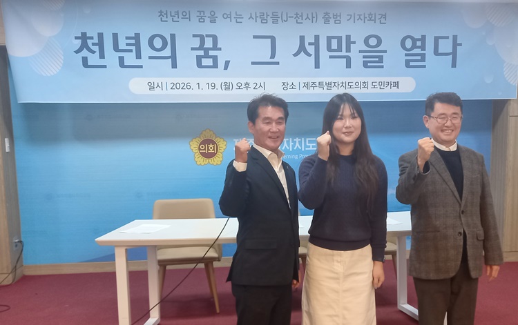 [ÇѶóÀϺ¸] »çȸÀûÇùµ¿Á¶ÇÕ Á¦ÁÖ·Î »êÇÏ ´ÜüÀÎ 'õ³âÀÇ ²ÞÀ» ¿©´Â »ç¶÷µé(J-õ»ç)'ÀÌ 19ÀÏ Á¦ÁÖµµÀÇȸ µµ¹ÎÄ«Æä¿¡¼ ±âÀÚȸ°ßÀ» ¿°í °ø½Ä Ãâ¹üÇß´Ù.