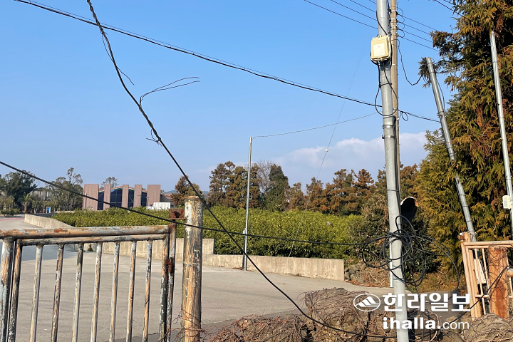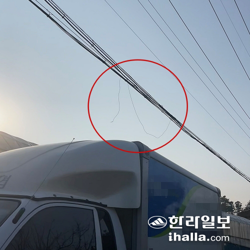 [ÇѶóÀϺ¸] Á¦ÁÖ µµ½É °÷°÷¿¡¼ ¼³Ä¡µÈ Åë½Å¼±¿¡ ´ëÇÑ °ü¸®°¡ ÀÌ·ïÁöÁö ¾ÊÀ¸¸é¼ ¹Ì°üÀ» ÇØÄ¡°í º¸ÇàÀÚ¿Í Â÷·® ÅëÇàÀ» À§ÇùÇϰí ÀÖ´Ù.