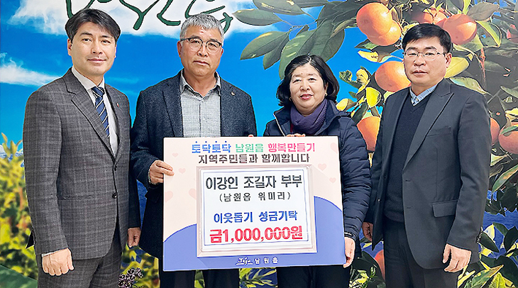 ¼±ÍÆ÷½Ã ³²¿øÀ¾ À§¹Ì¸®¿¡ °ÅÁÖÇÏ´Â À̰ÀΡ¤Á¶±æÀÚ ¾¾ ºÎºÎ´Â Áö³ 27ÀÏ ¼º±Ý 100¸¸¿øÀ» ³²¿øÀ¾¿¡ ±âŹÇß´Ù.