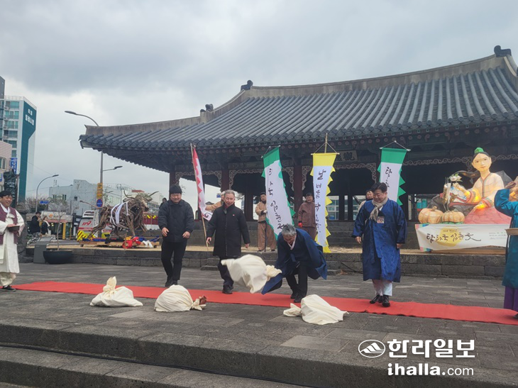 '2026 º´¿À³â Ž¶ó±¹ ÀÔÃá±Â'ÀÌ ½ÃÀÛµÈ °¡¿îµ¥ 2ÀÏ ¿ÀÀü Á¦ÁÖµµÀÇȸ¿¡¼ ÁøÇàµÈ 'Ãá°æ¹®±Â'. °Èñ¸¸±âÀÚ