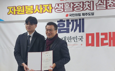 °í±âö ±¹¹ÎÀÇÈû Á¦ÁÖµµ´ç À§¿øÀåÀÌ »ýȰÁ¤Ä¡½Çõ´Ü Ãâ¹ü½Ä¿¡¼ ÀÓ¸íÀåÀ» ¼ö¿©Çϰí ÀÖ´Ù.±¹¹ÎÀÇÈû Á¦ÁÖµµ´ç Á¦°ø