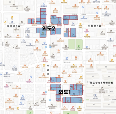 Á¦Áֽ𡠿ܵµ 1, ¿Üµµ2 °ñ¸ñÇü»óÁ¡°¡ 2°÷À» ½Å±Ô ÁöÁ¤Çß´Ù. ÀÌ »óÁ¡°¡ ±¸¿ª¿¡´Â ¸ðµÎ 98°³ÀÇ Á¡Æ÷°¡ ¿µ¾÷ ÁßÀÌ´Ù. Á¦Áֽà Á¦°ø