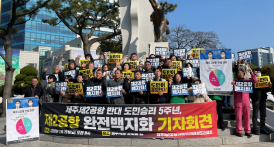 [ÇѶóÀϺ¸] Á¦ÁÖÁ¦2°øÇ× ¿©·ÐÁ¶»ç °á°ú ¹ßÇ¥ 5³âÀ» ¸Â¾Æ µµ³» ½Ã¹Î´Üü°¡ ¡®Á¦2°øÇ× ¹éÁöÈ¡¯¸¦ Ã˱¸ÇÏ°í ³ª¼¹´Ù.