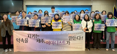 Á¦ÁÖ ¿©¼º´ëȸ´Â ´ÙÀ½´Þ 7ÀÏ ¿ÀÈÄ 3½ÃºÎÅÍ 5½Ã±îÁö Á¦ÁÖ½Ãû ¹Î¿ø½Ç ¾Õ¿¡¼ ¿¸°´Ù. ½½·Î°ÇÀº ¡®¾à¼ÓÀ» ÁöŰ´Â Á¦ÁÖ, Æä¹Ì´Ï½ºÆ®°¡ ¸¸µç´Ù!¡¯ÀÌ´Ù.