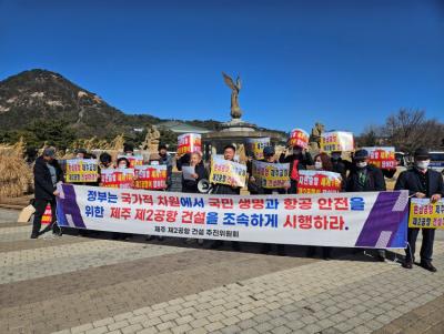 Á¦ÁÖ Á¦2°øÇ× °Ç¼³ÃßÁøÀ§¿øÈ¸´Â 25ÀÏ Ã»¿Í´ë ¾Õ ºÐ¼ö´ë¿¡¼ ±âÀÚȸ°ßÀ» °®°í "Á¦ÁÖ Á¦2°øÇ×Àº ±¹°¡ Ç×°ø ¾ÈÀü°ú Á¦ÁÖ ¹Ì·¡¹ßÀüÀ» À§ÇÑ ±¹°¡ ÇʼöÀÎÇÁ¶ó »ç¾÷"À̶ó¸ç Á¶¼ÓÈ÷ Âø°ø¿¡ ³ª¼³ °ÍÀ» Ã˱¸Çß´Ù. ºÎ¹ÌÇö ±âÀÚ