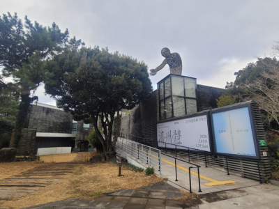 ±×°¡ ¼³°èÇÑ °ø°ø¹Ì¼ú°üÀÎ Á¦ÁÖÇö´ë¹Ì¼ú°ü¿¡¼ ¿¸®´Â ±âȹÀü½Ã½Ç·Î µé¾î¼¸é '°ÇÃà °¨°¢ÀÇ ¹ÙÅÁ'À̶ó´Â ÁÖÁ¦°¡ óÀ½ ¹Ý±ä´Ù. ºÎÄ£ ±è±¤Ãß(1905~1983)ÀÇ °ü·Ã ÀÚ·á¿Í ±×°¡ ÅÂ¾î³ Á¦Áֽà Ⱥϵ¿ ¿Ü°¡ÀÇ °Å´ëÇÑ ¸ðÇüÀ» ¸¶ÁÖÇϴµ¥, Á¦ÁַκÎÅÍ Çü¼ºµÈ ±×ÀÇ °ÇÃàÀ» µé¿©´Ù º¼ ¼ö ÀÖ´Â °ø°£ÀÌ´Ù.
