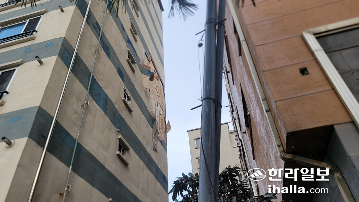 | 2ÀÏ ¿ÀÈÄ 4½Ã 19ºÐÂë Á¦Áֽà ¿Üµµ1µ¿ÀÇ ÇÑ °Ç¹° ¿Üº®¿¡ ÀÖ´ø ¿ÜÀåÀç°¡ °Ç³¿¡ ÀÇÇØ ¶³¾îÁ³´Ù. Á¦ÁÖ¼Ò¹æ¾ÈÀüº»ºÎ Á¦°ø |