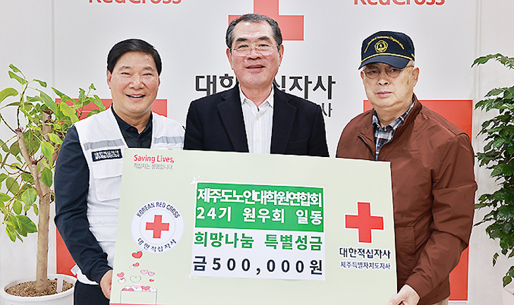 Á¦ÁÖµµ³ëÀδëÇпø¿¬ÇÕȸ 24±â ¿ø¿ìȸ(ȸÀå ¾çÈ£¼±)´Â ÃÖ±Ù ´ëÇÑÀû½ÊÀÚ»ç Á¦ÁÖÆ¯º°ÀÚÄ¡µµÁö»ç(ȸÀå Á¤Å±Ù)¿¡ Èñ¸Á³ª´® Ưº°¼º±Ý 50¸¸¿øÀ» ±âŹÇß´Ù.