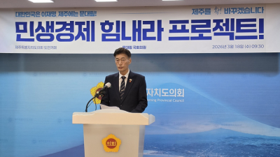[ÇѶóÀϺ¸] ¿À´Â 6¿ù Ä¡·¯Áö´Â Á¦9ȸ Àü±¹µ¿½ÃÁö¹æ¼±°Å Á¦ÁÖµµÁö»ç Ã⸶¸¦ ¼±¾ðÇÑ ¹®´ë¸² ±¹È¸ÀÇ¿ø(´õºÒ¾î¹ÎÁִ硤Á¦Áֽà °©)ÀÌ ¹Î»ý°æÁ¦ ȸº¹À» À§ÇÑ 5´ë ÇÁ·ÎÁ§Æ®¸¦ ¹ßÇ¥Çß´Ù.