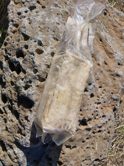 ÇØ°æ¿¡ µû¸£¸é ¹ß°ßµÈ ¹°Ã¼´Â 1§¸ÀÇ Àº»ö Â÷ Æ÷ÀåÁö ÇüÅ¿´°í Áö³ÇØ Á¦ÁÖ ÇØ¾È¿¡¼ ¹ß°ßµÈ Æ÷Àå ÇüÅÂ¿Í µ¿ÀÏÇß´Ù. Æ÷ÀåÁö ¿ÜºÎ´Â Å»»öµÇ°í ÀϺΰ¡ Âõ°Ü ³»ºÎ¿¡ ¼Ò·®ÀÇ ¹°ÀÌ µé¾î ÀÖ´Â »óÅ¿´´Ù.