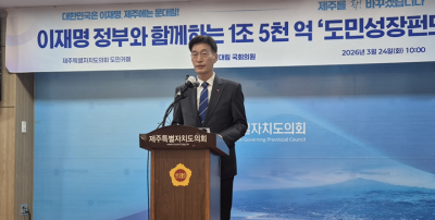 [ÇѶóÀϺ¸] Á¦ÁÖÆ¯º°ÀÚÄ¡µµÁö»ç ¼±°Å¿¡ Ã⸶ÇÑ ¹®´ë¸² ÀÇ¿ø(´õºÒ¾î¹ÎÁÖ´ç, Á¦Áֽà °©)ÀÌ 'Á¦ÁÖ µµ¹Î¼ºÀå ÆÝµå' Á¶¼ºÀ» °ø¾àÀ¸·Î ³»¼¼¿ü´Ù.