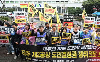 Á¦ÁÖÁ¦2°øÇ×°ÇàÀúÁöºñ»óµµ¹ÎȸÀÇ(ÀÌÇÏ ºñ»óµµ¹ÎȸÀÇ)´Â À̳¯ Á¦ÁÖ½Ãû¿¡¼ Ãâ¹ßÇØ ¾à 7§°¸¦ °É¾î Çà»çÀå¿¡ µµÂøÇß´Ù. Áö³ 27ÀϺÎÅÍ ºñ»óµµ¹ÎȸÀǰ¡ ÁøÇàÇÏ´Â Á¦2°øÇ× µµ¹Î°áÁ¤±ÇÀ» Ã˱¸Çϸç ÁøÇàÇÏ´Â ¡®µµº¸¼ø·Ê¡¯ÀÇ ÀÏȯÀÌ´Ù.