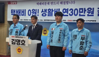 [ÇѶóÀϺ¸] 6¡¤3Á¦ÁÖÆ¯º°ÀÚÄ¡µµÁö»ç ¼±°Å¿¡ Ã⸶ÇÏ´Â ±è¸íÈ£ Áøº¸´ç Á¦ÁÖµµÁö»ç ¿¹ºñÈ帰¡ Åùè Ãß°¡¹è¼Ûºñ ÇØ¼Ò¸¦ À§ÇÑ Åùè Á¤Ã¥ °ø¾àÀ» ¹ßÇ¥Çß´Ù.