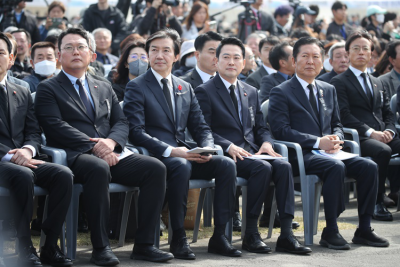 [ÇѶóÀϺ¸] Á¦78ÁÖ³â 4¡¤3Èñ»ýÀÚ Ãß³ä½Ä¿¡ Âü¼®ÇÑ ¿©¾ß Á¤´ç ´ç´ëÇ¥µéÀÌ 4¡¤3¿Ö°î¿¡ ´ëÇØ ¿ë³³ÇÒ ¼ö ¾ø´Ù°í ÇѸñ¼Ò¸®¸¦ ³Â´Ù.