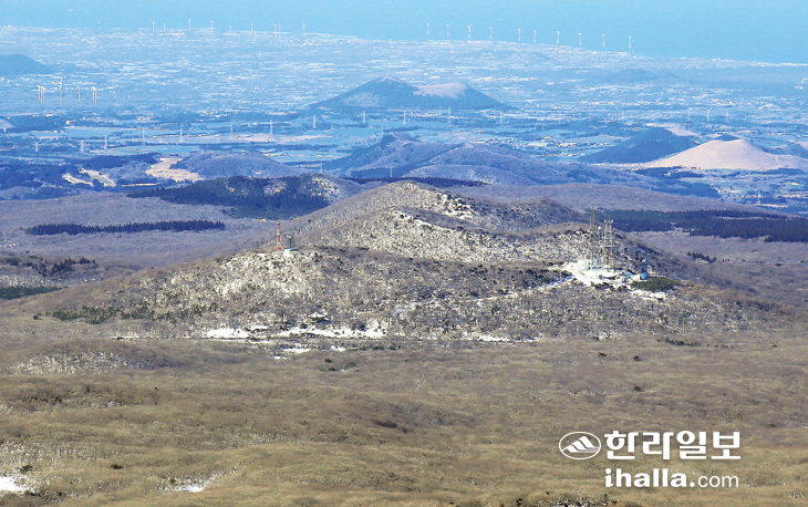 [ÇѶóÀϺ¸] 516µµ·Î¸¦ µû¶ó ¼±ÍÆ÷·Î ³Ñ¾î°¡´Â µµÁß Á¦ÁÖ¸¶¹æ¸ñÁö¸¦ °üÅëÇÏ°Ô µÈ´Ù. ÀÌ ¸ñÀåÀ» ¹þ¾î³¯ ÁîÀ½ ¿ÞÂÊÀ¸·Î Á¤»ó¿¡ ¿©·¯ ¼Û½ÅžÀÌ ÀÖ´Â ¿À¸§À» º¸°Ô µÈ´Ù. °³¿À¸®¿À¸§À̶ó°íµµ ÇÏ°í °ß¿ù¾ÇÀ̶ó°íµµ ÇÏ´Â ¿À¸§ÀÌ´Ù. ÀÌ ¿À¸§ÀÇ ¹Ý´ëÆí ±×·¯´Ï±î µµ·Î¸¦ »çÀÌ¿¡ µÎ°í ¸ÂÀºÆí¿¡ ³ªÁö¸·ÇÑ ¿À¸§À» º¼ ¼ö ÀÖ´Ù. ¼ºÁøÀÌ¿À¸§ÀÌ´Ù. Ç¥°í 700.5m, ÀÚü³ôÀÌ 75m´Ù. »êÁ¤ºÎ¿¡ ¿øÇüÀÇ ºÐȱ¸°¡ ÀÖÀ¸¸ç, »êü´Â µÕ±×½º¸§ÇÏ°í ¿Ï¸¸ÇØ ¸Ö¸®¼ º¸¸é À§°¡ ±æ°í ÆòÆòÇØ º¸ÀδÙ.