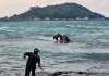 [ÇѶóÀϺ¸] Á¦Áֽà ÇùÀçÇØ¼ö¿åÀå¿¡¼ ¹°³îÀ̸¦ Áñ±â´Ù ÆÄµµ¿¡ ¶°¹Ð·Á°£ °ü±¤°´ 2¸íÀÌ ÇØ°æ¿¡ ÀÇÇØ ±¸Á¶µÆ´Ù. ¡¦