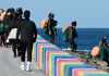 [ÇѶóÀϺ¸] 12ÀÏ Á¦Áֽà ÀÌÈ£µ¿ ÇØ¾ÈÀ» ãÀº °ü±¤°´µéÀÌ ¹Ù´Ù¿¡¼ ºÒ¾î¿À´Â Âù¹Ù¶÷À» ¸ÂÀ¸¸ç °É¾î°¡°í ÀÖ´Ù. ¡¦